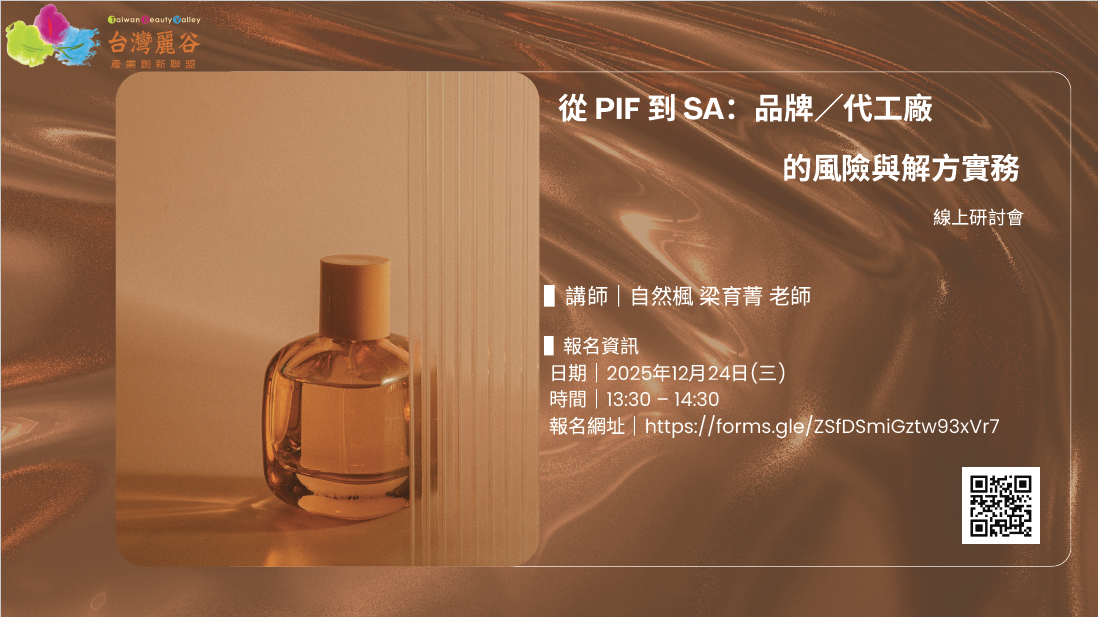 台灣麗谷將於12/24(三)舉辦「從 PIF 到 SA:品牌/代工廠的風險與解方實務」主題分享,歡迎會員及業界先進踴躍報名參加!